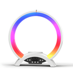 15 ডাব্লু ওয়্যারলেস রিভার্স চার্জিং, অ্যালার্ম ক্লক, ব্লুটুথ মাল্টি-ডিভাইস সংযোগ সহ কুমার আরজিবি পরিবেষ্টিত সার্কুলার নাইট লাইট স্পিকার